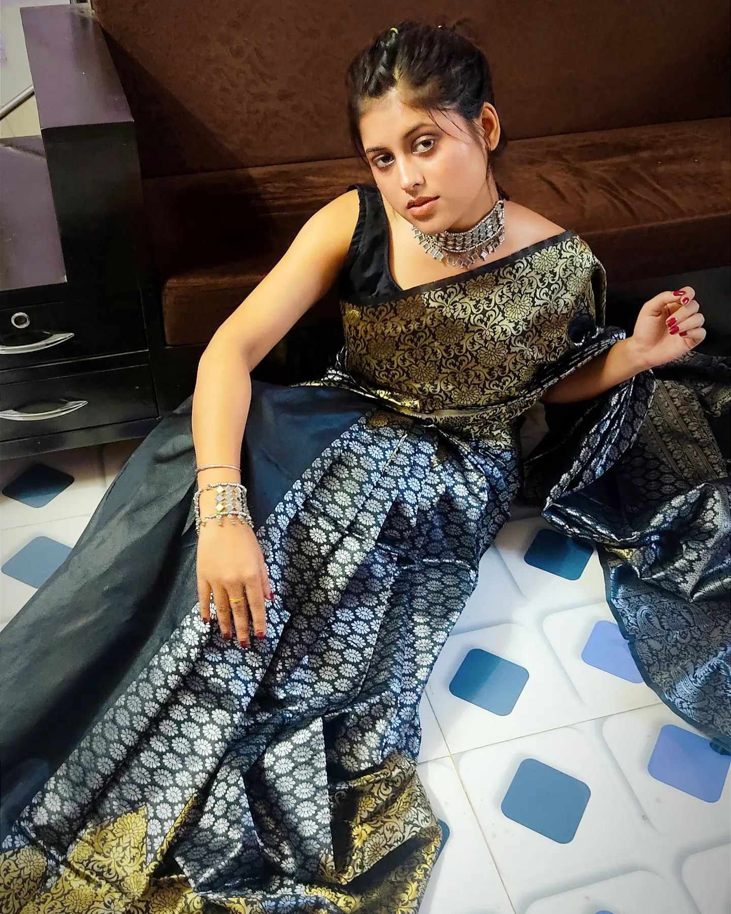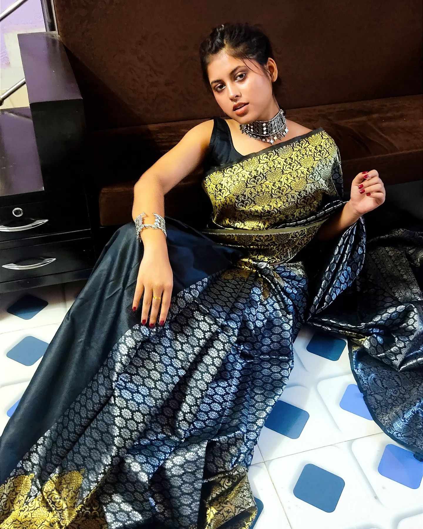 STUNNING BLACK COLOUR SAREE WITH BLOUSE
