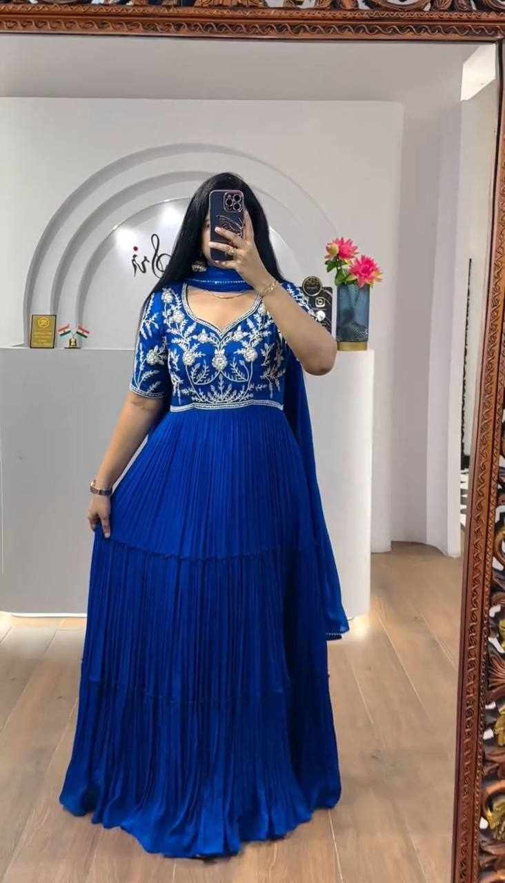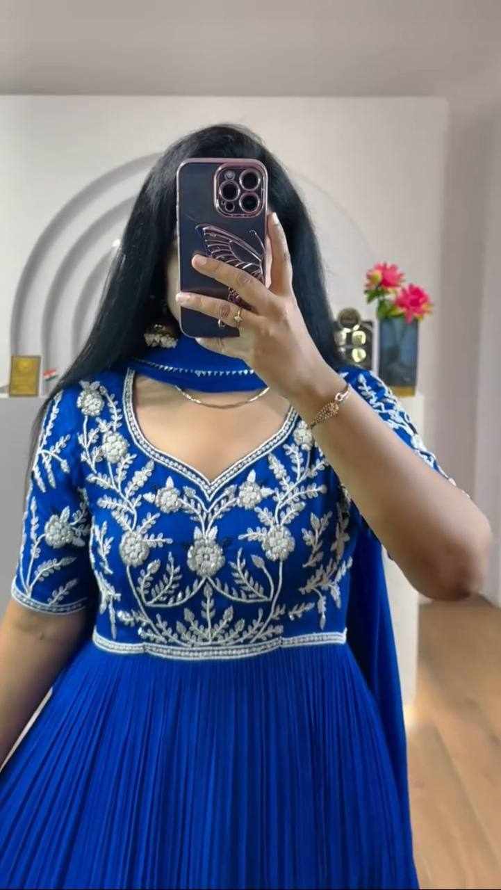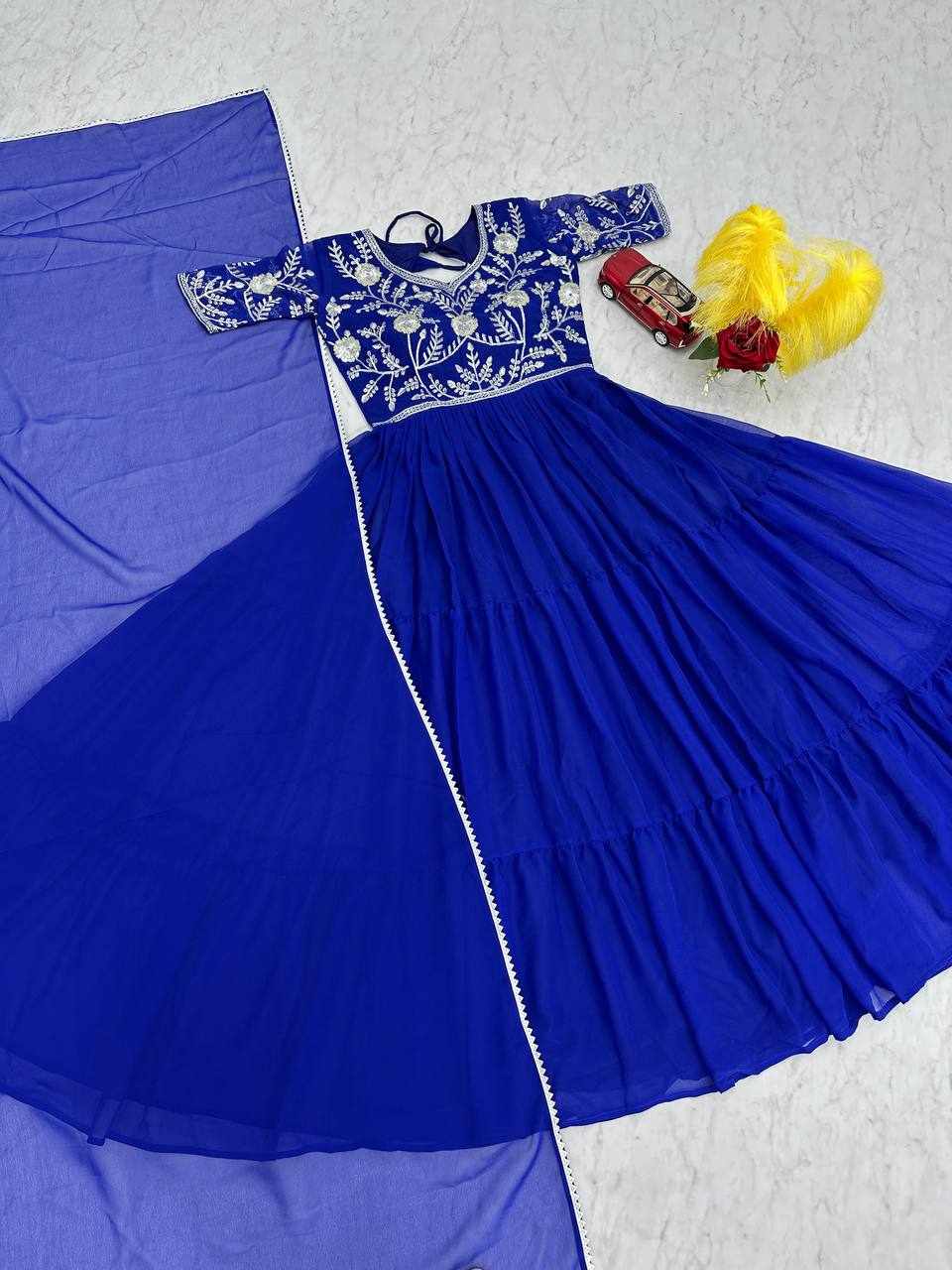 PC 459 Blue Fox Georgette Embroidered Gown