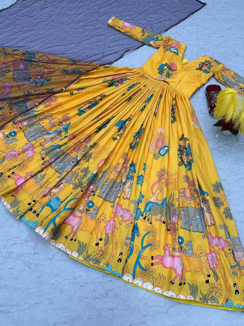| Name : | PC 474 Yellow New Kalamkari Gown |