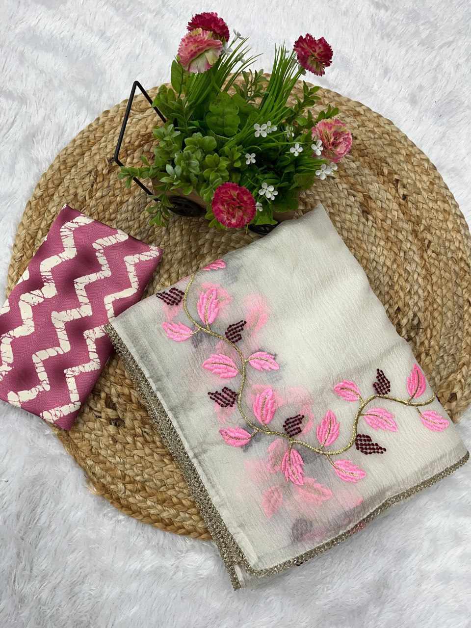 RC WHITE Beautiful Designer Saree