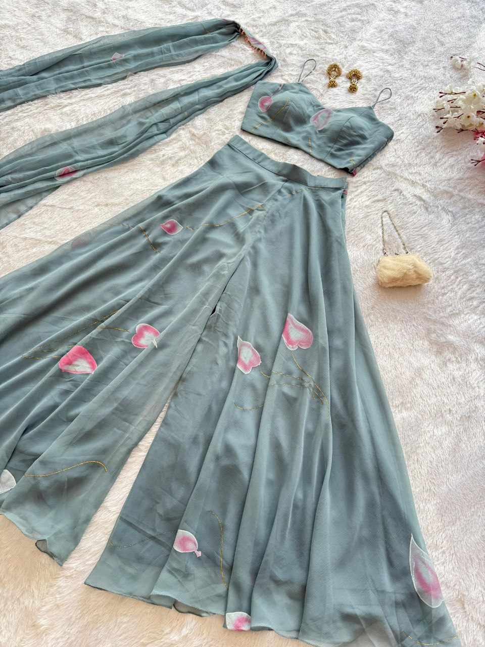 Plazo – Pure Georgette hand-painted flared plazo designed for effortless flow and all-day comfort